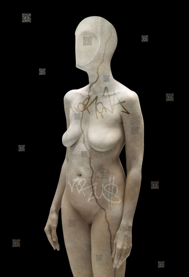 Cette œuvre intitulée "QR Passed Humanity" est proposée dans un tirage Fine Art sur papier photographique NEGPAPER Pearl 300g (le Pearl NEGPAPER est extra blanc composé de polyéthylène doté d'un couchage jet d'encre perlé.), qui est un papier peu texturé qui fait particulièrement ressortir les noirs. Elle est tirée dans un format 30 x 22,5 cm marges comprises ; hors marges blanches, les dimensions de l’image elle-même sont 28,5 x 19,5 cm Le tirage est vendu non encadré.